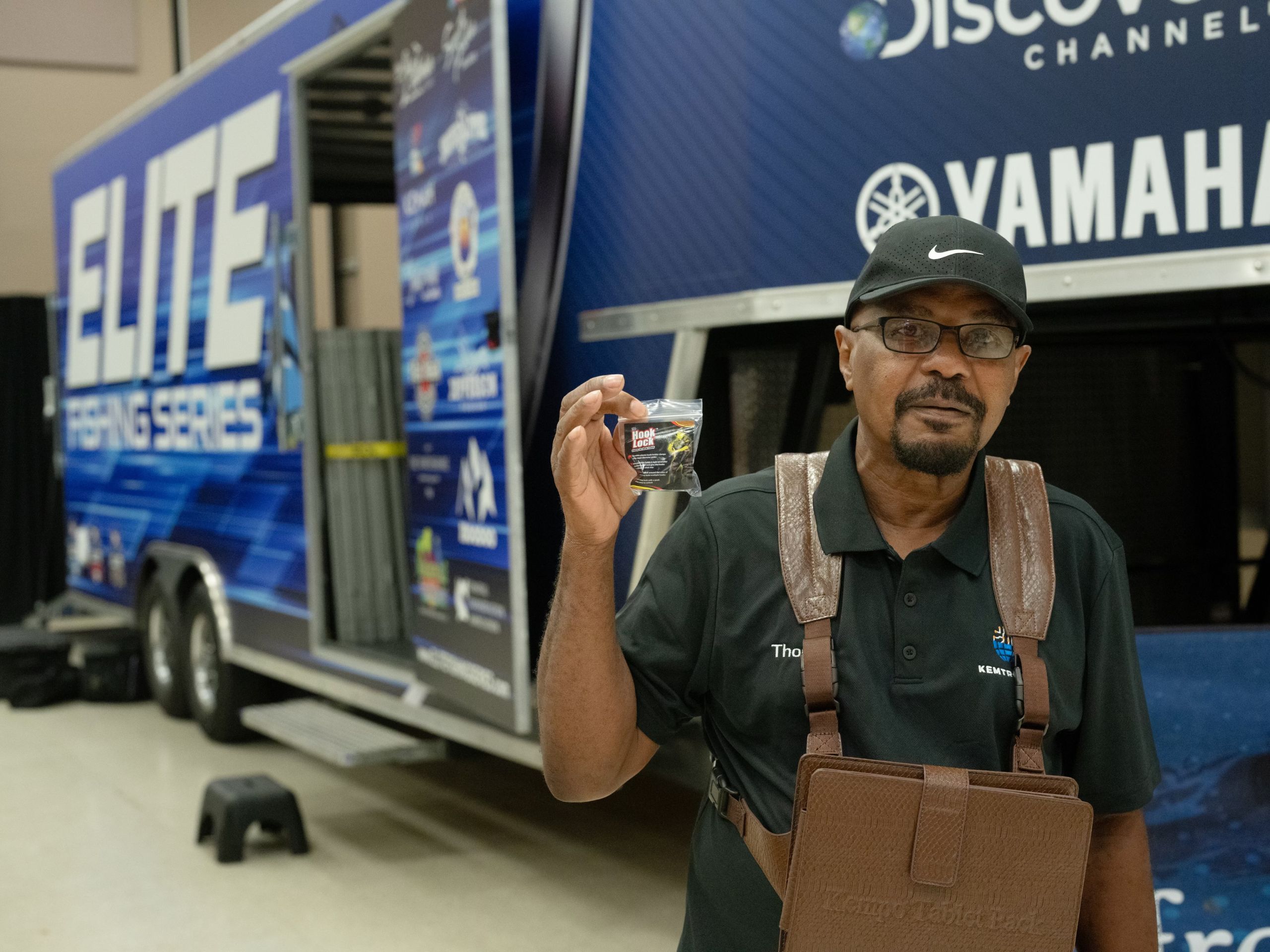 This is The Fishing Hook Lock for Fishermen / Salt & Fresh water fishing. The Hook Lock clamps onto the diameter of your fishing rod, and give the hooks something to stick into. The Hook Lock also serve as a safety protection device to keep you from getting stuck by the sharp hook.